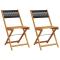 Chaises de bistrot lot de 2 noir bois d'acacia et cordeCes chaises de bistro, fabriquées en bois d'acacia massif, seront un excellent choix pour votre famille pour dîner ou lire et se détendre.Robuste et stable : le bois d'acacia massif est connu pour sa solidité et sa durabilité. Ses couleurs variées et ses grains uniques lui confèrent un aspect attrayant. Sa stabilité et sa résistance aux intempéries en font un matériau idéal pour la fabrication de meubles d'intérieur et d'extérieur.Facile à transporter et à ranger : la chaise peut être facilement pliée lorsqu'elle n'est pas utilisée, pour un rangement et un transport faciles.Conception pratique : la chaise d'extérieur ne comporte pas d'accoudoir, mais uniquement un dossier en corde, ce qui vous permet d'être plus libre de vos mouvements tout en bénéficiant d'un grand confort.Diverses utilisations : la chaise a un large éventail d'utilisations et peut facilement répondre à vos besoins dans n'importe quel environnement extérieur, comme les jardins, les patios, les balcons, etc. Bon à savoir :Pour que vos meubles d'extérieur restent beaux, nous vous recommandons de les protéger avec une housse imperméable. Maximum 110 kg par siège.