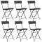 Chaises de bistrot pliantes lot de 6 Noir Résine tressée acierCes chaises de bistrot pliantes sont le complément parfait à votre jardin et à votre terrasse, créant une impression durable ! Matériau durable : la résine tressée, également connue sous le nom de rotin poly, résiste aux intempéries et est facile à nettoyer. Elle reste belle à l'extérieur pendant une longue période. Elle est plus économique que d'autres matériaux, tout en offrant une excellente qualité, une commodité et un aspect esthétique.Cadre stable : le cadre en acier enduit de poudre assure la robustesse et la stabilité.Design pliable : les chaises peuvent être facilement repliées lorsqu'elles ne sont pas utilisées pour faciliter le rangement et le transport. Bon à savoir :Pour faciliter au maximum le montage, chaque produit est livré avec des instructions. Remarque :Pour que vos meubles d'extérieur restent beaux, nous vous recommandons de les protéger avec une housse imperméable. Maximum 110 kg par siège.