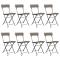 Chaises de bistrot pliantes lot de 8 Gris Résine tressée acierCes chaises de bistrot pliantes sont le complément parfait à votre jardin et à votre terrasse, créant une impression durable ! Matériau durable : la résine tressée, également connue sous le nom de rotin poly, résiste aux intempéries et est facile à nettoyer. Elle reste belle à l'extérieur pendant une longue période. Elle est plus économique que d'autres matériaux, tout en offrant une excellente qualité, une commodité et un aspect esthétique.Cadre stable : le cadre en acier enduit de poudre assure la robustesse et la stabilité.Design pliable : les chaises peuvent être facilement repliées lorsqu'elles ne sont pas utilisées pour faciliter le rangement et le transport. Bon à savoir :Pour faciliter au maximum le montage, chaque produit est livré avec des instructions. Remarque :Pour que vos meubles d'extérieur restent beaux, nous vous recommandons de les protéger avec une housse imperméable. Maximum 110 kg par siège.