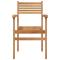 Chaise 4 pcs Marron 56 x 55 x 90,5 cm Bois de teck massifCette chaise de salle à manger d'extérieur au design rustique chic et en teck massif offre une assise parfaite pour toute terrasse ou jardin. Sa couleur naturelle et son artisanat font d'elle un meuble à la fois fonctionnel et esthétiquement plaisant. Chaque siège invite à la détente, avec des caractéristiques résistantes pour garantir qu'elle garde sa beauté au fil du temps. Composition en teck massif : La chaise est fabriquée en teck massif, connu pour sa durabilité contre les intempéries. Cela lui assure une longue vie tout en gardant son charme rustique, idéale pour ceux qui cherchent style et solidité pour leur mobilier extérieur. Accoudoirs en bois sculptés : Les accoudoirs sont sculptés avec soin, alliant esthétique et confort. Ces détails améliorent l'apparence et l'ergonomie de la chaise, rendant vos moments de détente encore plus agréables. Forme rectangulaire : Parfaite pour la plupart des configurations de salle à manger en plein air, sa forme rectangulaire permet une installation facile, que ce soit sur un patio ou dans un jardin spacieux. Idéale pour les jardins : Conçues pour affronter les aléas de la météo, ces chaises se fondent parfaitement dans les paysages extérieurs avec leur belle finition marron, qui danse avec la nature. Conseils d'entretien : Protégez votre chaise en la couvrant quand vous ne l'utilisez pas, afin de préserver sa texture et d'éviter l'usure, pour qu'elle reste toujours magnifique dans votre jardin. ,