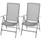 Chaises empilables de jardin lot de 2 Acier GrisCet ensemble de chaises inclinables en métal est doté d'un design élégant en maille et ajoutera une touche de style contemporain à votre patio, jardin ou salle à manger. Lorsque vous inviterez des invités, ils seront émerveillés par ces chaises inclinables modernes et de style industriel. Ces chaises de jardin de haute qualité disposent d'un dossier inclinable réglable en 6 positions. Asseyez-vous et profitez de votre temps libre dans le confort avec ces chaises inclinables élégantes ! Les chaises sont en acier robuste qui a reçu un revêtement par électrodéposition et un revêtement en poudre. Les chaises en métal sont très solides, durables et résistantes aux intempéries et à la rouille. Elles sont également très faciles à nettoyer et à entretenir grâce à la finition. La conception en maille donne aux chaises un aspect élégant. Ces chaises peuvent être rabattues pour économiser de l'espace lorsqu'elles ne sont pas utilisées. La livraison comprend 2 chaises inclinables. L'assemblage est facile. Maximum 110 kg par siège. ,