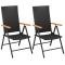 Chaises empilables de jardin lot de 2 Résine tressée NoirCet ensemble de chaises de jardin est idéal pour une utilisation dans votre jardin, terrasse ou patio. Les chaises sont faites de résine tressée de haute qualité, qui est durable et résistante aux intempéries. Les cadres en aluminium enduit de poudre rendent les chaises très robustes. Les accoudoirs en WPC de couleur marron s'ajoutent au look élégant des chaises. Les dossiers des chaises disposent de 7 positions d'inclinaison, ce qui vous permet de toujours trouver la position d'assise la plus confortable. Les chaises peuvent être pliées pour économiser de l'espace lorsqu'elles ne sont pas utilisées. L'assemblage est facile. La livraison comprend 2 chaises pliables. Maximum 110 kg par siège. ,