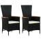 Chaises d'extérieur lot de 2 avec coussins Résine tressée NoirNotre élégant fauteuil en résine tressée deviendra le point central de votre jardin ou terrasse. Fabriqué en résine tressée résistante à l'eau, le fauteuil est facile à nettoyer, résistant à l'usure et convient à un usage quotidien. Les cadres en acier enduit de poudre rendent les chaises résistantes et robustes. Les chaises inclinables vous offrent tout le confort nécessaire. Le dossier s'incline en tirant sur le bouton situé sur le côté. Grâce à leur construction légère, elles sont faciles à déplacer. Elles sont également livrées avec des coussins de siège hautement confortables et épaississement rembourrés pour un confort ultime. Les housses en polyester nécessitant peu d'entretien peuvent également être enlevées et lavées. L'assemblage est facile. La livraison comprend 2 fauteuils et 2 coussins de siège. Remarque : Nous recommandons de couvrir l'ensemble sous la pluie, la neige et le gel. Maximum 110 kg par siège. Soyez conscient du risque de feux ouverts et d'autres sources de forte chaleur à proximité du produit. ,