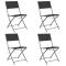 Chaises d'extérieur pliables lot de 4 Noir Acier et textilèneCes chaises pliables, fabriquées en acier et en tissu textilène, seront idéales pour vous détendre ou dîner en plein air. Matériau haut de gamme : ce qui rend ces chaises confortables, c'est le tissu en textilène, qui est résistant à l'usure et aux intempéries. Cadre robuste : ces chaises de jardin sont dotées d'un cadre en acier enduit de poudre, ce qui les rend robustes et stables. Design pliable : lorsqu'elles ne sont pas utilisées, les chaises de salle à manger peuvent être repliées pour gagner de la place. Remarque : Afin de prolonger la durée de vie de votre mobilier d'extérieur, nous vous recommandons de le protéger avec une housse imperméable. Maximum 110 kg par siège. ,