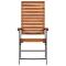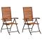 Chaises inclinables de jardin lot de 2 Bois solide d'acaciaCes chaises de jardin inclinables en bois dégagent un design vintage qui sera vraiment un excellent supplément pour les repas en plein air dans le jardin ou sur la terrasse. Les chaises de salle à manger sont fabriquées en bois dur d'acacia de haute qualité qui se caractérise par une excellente résistance aux intempéries et une excellente durabilité. Par conséquent, les chaises sont idéales pour une utilisation intérieure et extérieure. De plus, le cadre en acier robuste ajoute à la stabilité et à la robustesse des chaises. Les dossiers des chaises sont réglables sur 5 positions d'inclinaison, ce qui vous permet de toujours trouver la position la plus agréable. Grâce à leur conception pliante, les chaises peuvent être facilement rangées lorsqu'elles ne sont pas utilisées. Ces chaises d'extérieur sont également faciles à assembler. La livraison comprend 2 chaises. Maximum 110 kg par siège. ,