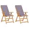 Chaises inclinables de jardin lot de 2 Bois solide d'acaciaRehaussez le confort de votre espace extérieur avec cet ensemble de chaises de jardin en bois élégant et confortable ! Il est idéal pour discuter avec la famille et les amis ou tout simplement profiter du beau temps. Notre ensemble de chaises inclinables est en bois d'acacia massif, un bois dur tropical, résistant aux intempéries et très durable. Le coussin en tissu ajoute au confort d'assise de la chaise. Le dossier de la chaise peut être ajusté en 5 positions d'inclinaison, donc vous pouvez toujours trouver la position la plus confortable. La conception légère facilite le déplacement dans la maison. De plus, la chaise peut être pliée pour économiser de l'espace lorsqu'elle n'est pas utilisée. La livraison comprend 2 chaises de jardin. Maximum 110 kg par siège. Soyez conscient du risque de feux ouverts et d'autres sources de forte chaleur à proximité du produit.