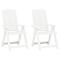Chaises inclinables de jardin lot de 2 Plastique Blanc Améliorez le confort de votre espace extérieur avec cet élégant ensemble de chaises de jardin ! Cet ensemble est un complément idéal pour votre patio, jardin, piscine ou tout autre espace de vie extérieur ! Stable et durable : le plastique est un matériau polyvalent connu pour sa légèreté, sa durabilité et sa facilité à nettoyer. Le matériau consiste en un plastique durable et résistant aux intempéries, ce qui rend ce banc de jardin parfait pour une utilisation en extérieur. Conception réglable : le dossier des chaises est réglable, de sorte que vous puissiez toujours trouver les positions les plus confortables. Conception légère : elles sont légères, ce qui les rend faciles à déplacer. Conception pratique : lorsqu'elles ne sont pas utilisées, vous pouvez les replier pour gagner de la place. Bon à savoir : Pour que vos meubles d'extérieur restent beaux, nous vous recommandons de les protéger avec une housse imperméable. Maximum 110 kg par siège. ,