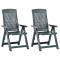 Chaises inclinables de jardin lot de 2 Plastique VertAméliorez le confort de votre espace extérieur avec cet élégant ensemble de chaises de jardin. Elles sont idéales pour discuter en famille et entre amis ou simplement pour profiter du bain de soleil ! Les chaises inclinables sont fabriquées en plastique durable, ce qui les rend résistantes aux intempéries et faciles à nettoyer. Le dossier des chaises est réglable, de sorte que vous puissiez toujours trouver les positions les plus confortables. Elles sont légères, ce qui les rend faciles à déplacer. Lorsqu'elles ne sont pas utilisées, vous pouvez les replier pour gagner de la place. La livraison comprend 2 chaises. Maximum 110 kg par siège. ,