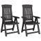 Chaises inclinables de jardin lot de 2 anthracite PPCes chaises inclinables de jardin sont parfaites pour discuter avec vos amis et votre famille ou simplement pour profiter et vous détendre sous le soleil ! Matériau durable : le polypropylène (PP) est un plastique populaire qui est également l'un des matériaux les plus utilisés dans le mobilier d'extérieur. Il est léger, robuste et résistant aux chocs.Dossier réglable : le dossier de la chaise de jardin peut être réglé en 4 positions d'inclinaison, de sorte que vous puissiez toujours régler la position la plus confortable selon vos préférences.Fonction pliable : le siège de jardin peut être plié pour gagner de la place lorsqu'il n'est pas utilisé.Déplacement facile : grâce à sa construction légère, la chaise d'extérieur est facile à déplacer. Remarque :Pour que vos meubles d'extérieur restent beaux, nous vous recommandons de les protéger avec une housse imperméable. Maximum 110 kg par siège.