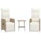 Chaises inclinables de jardin lot de 2 avec table beige rotinCes chaises inclinables de jardin avec une table sont un complément parfait à votre jardin et à votre terrasse, créant une impression durable ! Matériau durable : la résine tressée, également connue sous le nom de poly rotin, est un matériau synthétique solide et nécessitant peu d'entretien qui ressemble au rotin naturel. Il est léger, facile à nettoyer et couramment utilisé pour les meubles d'extérieur en raison de sa durabilité et de ses propriétés de résistance aux intempéries.Dossier et repose-pied réglables : ce siège de jardin est doté d'une poignée. Vous pouvez régler le dossier et le repose-pied dans n'importe quelle position en tirant sur la poignée, et les remettre rapidement dans leur position initiale.Table pratique : la table de jardin est parfaite pour placer des boissons, de la nourriture et des décorations. Il a une belle apparence et est facile à nettoyer.Expérience d'assise confortable : ce mobilier d'extérieur, doté de coussins épais, offre une expérience d'assise confortable.Housse amovible et lavable : ces coussins de siège sont dotés de housses amovibles pour un lavage et un entretien faciles. Bon à savoir :Pour que vos meubles d'extérieur restent beaux, nous vous recommandons de les protéger avec une housse imperméable.