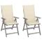 Chaises inclinables de jardin lot de 2 et coussins Bois acaciaCet ensemble de chaises inclinables de jardin à la mode avec coussins augmente le confort de votre espace extérieur ! Ces fauteuils sont en bois d'acacia massif à la finition délavé gris, un bois dur aux grains denses. Ces chaises d'extérieur magnifiquement conçues sont stables, durables et accrocheuses. Le dossier de la chaise peut être ajusté en 5 réglages d'inclinaison, de sorte que vous puissiez toujours trouver la position la plus confortable selon vos préférences. De plus, les coussins fournis offrent un confort supplémentaire lors de la relaxation. Ils sont fabriqués en 100 % polyester qui a été traité pour le rendre imperméable. Chaque coussin a une sangle élastique et deux jeux de cordes pour le fixer fermement sur la chaise. Ces chaises en bois sont parfaites pour manger avec votre famille, ou tout simplement profiter du beau temps dans votre jardin. Maximum 110 kg par siège. ,