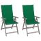 Chaises inclinables de jardin lot de 2 et coussins Bois acaciaCet ensemble de chaises inclinables de jardin à la mode avec coussins augmente le confort de votre espace extérieur ! Ces fauteuils sont en bois d'acacia massif à la finition délavé gris, un bois dur aux grains denses. Ces chaises d'extérieur magnifiquement conçues sont stables, durables et accrocheuses. Le dossier de la chaise peut être ajusté en 5 réglages d'inclinaison, de sorte que vous puissiez toujours trouver la position la plus confortable selon vos préférences. De plus, les coussins fournis offrent un confort supplémentaire lors de la relaxation. Ils sont fabriqués en 100 % polyester qui a été traité pour le rendre imperméable. Chaque coussin a une sangle élastique et deux jeux de cordes pour le fixer fermement sur la chaise. Ces chaises en bois sont parfaites pour manger avec votre famille, ou tout simplement profiter du beau temps dans votre jardin. Maximum 110 kg par siège. ,