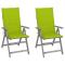 Chaises inclinables de jardin lot de 2 et coussins Bois acaciaCet ensemble de chaises inclinables de jardin à la mode avec coussins augmente le confort de votre espace extérieur ! Ces fauteuils sont en bois d'acacia massif à la finition délavé gris, un bois dur aux grains denses. Ces chaises d'extérieur magnifiquement conçues sont stables, durables et accrocheuses. Le dossier de la chaise peut être ajusté en 5 réglages d'inclinaison, de sorte que vous puissiez toujours trouver la position la plus confortable selon vos préférences. De plus, les coussins fournis offrent un confort supplémentaire lors de la relaxation. Ils sont fabriqués en 100 % polyester qui a été traité pour le rendre imperméable. Chaque coussin a une sangle élastique et deux jeux de cordes pour le fixer fermement sur la chaise. Ces chaises en bois sont parfaites pour manger avec votre famille, ou tout simplement profiter du beau temps dans votre jardin. Maximum 110 kg par siège.