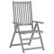 Chaises inclinables de jardin lot de 2 et coussins Bois acaciaCet ensemble de chaises inclinables de jardin à la mode avec coussins augmente le confort de votre espace extérieur ! Ces fauteuils sont en bois d'acacia massif à la finition délavé gris, un bois dur aux grains denses. Ces chaises d'extérieur magnifiquement conçues sont stables, durables et accrocheuses. Le dossier de la chaise peut être ajusté en 5 réglages d'inclinaison, de sorte que vous puissiez toujours trouver la position la plus confortable selon vos préférences. De plus, les coussins fournis offrent un confort supplémentaire lors de la relaxation. Ils sont fabriqués en 100 % polyester qui a été traité pour le rendre imperméable. Chaque coussin a une sangle élastique et deux jeux de cordes pour le fixer fermement sur la chaise. Ces chaises en bois sont parfaites pour manger avec votre famille, ou tout simplement profiter du beau temps dans votre jardin. Maximum 110 kg par siège. ,