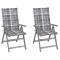 Chaises inclinables de jardin lot de 2 et coussins Bois acaciaCet ensemble de chaises inclinables de jardin à la mode avec coussins augmente le confort de votre espace extérieur ! Ces fauteuils sont en bois d'acacia massif à la finition délavé gris, un bois dur aux grains denses. Ces chaises d'extérieur magnifiquement conçues sont stables, durables et accrocheuses. Le dossier de la chaise peut être ajusté en 5 réglages d'inclinaison, de sorte que vous puissiez toujours trouver la position la plus confortable selon vos préférences. De plus, les coussins fournis offrent un confort supplémentaire lors de la relaxation. Ils sont fabriqués en 100 % polyester qui a été traité pour le rendre imperméable. Chaque coussin a une sangle élastique et deux jeux de cordes pour le fixer fermement sur la chaise. Ces chaises en bois sont parfaites pour manger avec votre famille, ou tout simplement profiter du beau temps dans votre jardin. Maximum 110 kg par siège.