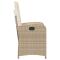 Chaises inclinables de jardin lot de 2 et coussins beige rotinDétendez-vous et profitez de l'extérieur dans ces confortables chaises de jardin inclinables ! Matériau durable : la résine tressée, également connue sous le nom de poly rotin, est un matériau synthétique solide et nécessitant peu d'entretien qui ressemble au rotin naturel. Il est léger, facile à nettoyer et couramment utilisé pour les meubles d'extérieur en raison de sa durabilité et de ses propriétés de résistance aux intempéries. Dossier réglable : ce meuble de jardin est équipé d'une poignée sur le côté droit. Vous pouvez régler le dossier dans n'importe quelle position en tirant sur la poignée. Vous pouvez également remettre rapidement le dossier dans sa position initiale à l'aide de la poignée. Expérience d'assise confortable : ce mobilier d'extérieur, doté de coussins épais, offre une expérience d'assise confortable. Housse amovible et lavable : ces coussins de siège sont dotés de housses amovibles pour un lavage et un entretien faciles. Cadre robuste et stable : le cadre en acier enduit de poudre assure la solidité et la stabilité du meuble de jardin pour une utilisation quotidienne à l'extérieur. Bon à savoir : Pour que vos meubles d'extérieur restent beaux, nous vous recommandons de les protéger avec une housse imperméable. Maximum 110 kg par siège. Soyez conscient du risque de feux ouverts et d'autres sources de forte chaleur à proximité du produit. ,