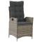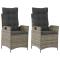 Chaises inclinables de jardin lot de 2 et coussins gris rotinDétendez-vous et profitez de l'extérieur dans ces confortables chaises de jardin inclinables ! Matériau durable : la résine tressée, également connue sous le nom de poly rotin, est un matériau synthétique solide et nécessitant peu d'entretien qui ressemble au rotin naturel. Il est léger, facile à nettoyer et couramment utilisé pour les meubles d'extérieur en raison de sa durabilité et de ses propriétés de résistance aux intempéries. Dossier réglable : ce siège de jardin est doté d'une poignée. Vous pouvez régler le dossier dans n'importe quelle position en tirant sur la poignée et le remettre rapidement dans sa position initiale. Expérience d'assise confortable : ce mobilier d'extérieur, doté de coussins épais, offre une expérience d'assise confortable. Housse amovible et lavable : ces coussins de siège sont dotés de housses amovibles pour un lavage et un entretien faciles. Cadre robuste et stable : le cadre en acier enduit de poudre assure la solidité et la stabilité du meuble de jardin pour une utilisation quotidienne à l'extérieur. Bon à savoir : Pour que vos meubles d'extérieur restent beaux, nous vous recommandons de les protéger avec une housse imperméable. Maximum 110 kg par siège. Soyez conscient du risque de feux ouverts et d'autres sources de forte chaleur à proximité du produit.