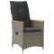 Chaises inclinables de jardin lot de 2 et coussins gris rotinDétendez-vous et profitez de l'extérieur dans ces confortables chaises de jardin inclinables ! Matériau durable : la résine tressée, également connue sous le nom de poly rotin, est un matériau synthétique solide et nécessitant peu d'entretien qui ressemble au rotin naturel. Il est léger, facile à nettoyer et couramment utilisé pour les meubles d'extérieur en raison de sa durabilité et de ses propriétés de résistance aux intempéries. Dossier réglable : ce siège de jardin est doté d'une poignée. Vous pouvez régler le dossier dans n'importe quelle position en tirant sur la poignée et le remettre rapidement dans sa position initiale. Expérience d'assise confortable : ce mobilier d'extérieur, doté de coussins épais, offre une expérience d'assise confortable. Housse amovible et lavable : ce coussin de siège est doté d'une housse amovible pour un lavage et un entretien faciles. Les coussins de dossier ont un rabat à l'arrière pour une fixation facile aux dossiers. Cadre robuste et stable : le cadre en acier enduit de poudre assure la solidité et la stabilité du meuble de jardin pour une utilisation quotidienne à l'extérieur. Bon à savoir : Pour que vos meubles d'extérieur restent beaux, nous vous recommandons de les protéger avec une housse imperméable.