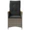 Chaises inclinables de jardin lot de 2 et coussins gris rotinDétendez-vous et profitez de l'extérieur dans ces confortables chaises de jardin inclinables ! Matériau durable : la résine tressée, également connue sous le nom de poly rotin, est un matériau synthétique solide et nécessitant peu d'entretien qui ressemble au rotin naturel. Il est léger, facile à nettoyer et couramment utilisé pour les meubles d'extérieur en raison de sa durabilité et de ses propriétés de résistance aux intempéries. Dossier réglable : ce siège de jardin est doté d'une poignée. Vous pouvez régler le dossier dans n'importe quelle position en tirant sur la poignée et le remettre rapidement dans sa position initiale. Expérience d'assise confortable : ce mobilier d'extérieur, doté de coussins épais, offre une expérience d'assise confortable. Housse amovible et lavable : ce coussin de siège est doté d'une housse amovible pour un lavage et un entretien faciles. Les coussins de dossier ont un rabat à l'arrière pour une fixation facile aux dossiers. Cadre robuste et stable : le cadre en acier enduit de poudre assure la solidité et la stabilité du meuble de jardin pour une utilisation quotidienne à l'extérieur. Bon à savoir : Pour que vos meubles d'extérieur restent beaux, nous vous recommandons de les protéger avec une housse imperméable. ,