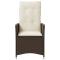 Chaises inclinables de jardin lot de 2 et coussins marron rotinDétendez-vous et profitez de l'extérieur dans ces confortables chaises de jardin inclinables ! Matériau durable : la résine tressée, également connue sous le nom de poly rotin, est un matériau synthétique solide et nécessitant peu d'entretien qui ressemble au rotin naturel. Il est léger, facile à nettoyer et couramment utilisé pour les meubles d'extérieur en raison de sa durabilité et de ses propriétés de résistance aux intempéries. Dossier réglable : ce siège de jardin est doté d'une poignée. Vous pouvez régler le dossier dans n'importe quelle position en tirant sur la poignée et le remettre rapidement dans sa position initiale. Expérience d'assise confortable : ce mobilier d'extérieur, doté de coussins épais, offre une expérience d'assise confortable. Housse amovible et lavable : ce coussin de siège est doté d'une housse amovible pour un lavage et un entretien faciles. Les coussins de dossier ont un rabat à l'arrière pour une fixation facile aux dossiers. Cadre robuste et stable : le cadre en acier enduit de poudre assure la solidité et la stabilité du meuble de jardin pour une utilisation quotidienne à l'extérieur. Bon à savoir : Pour que vos meubles d'extérieur restent beaux, nous vous recommandons de les protéger avec une housse imperméable.