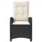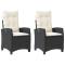 Chaises inclinables de jardin lot de 2 et coussins noir rotinDétendez-vous et profitez de l'extérieur dans ces confortables chaises de jardin inclinables ! Matériau durable : la résine tressée, également connue sous le nom de poly rotin, est un matériau synthétique solide et nécessitant peu d'entretien qui ressemble au rotin naturel. Il est léger, facile à nettoyer et couramment utilisé pour les meubles d'extérieur en raison de sa durabilité et de ses propriétés de résistance aux intempéries. Dossier réglable : ce siège de jardin est doté d'une poignée. Vous pouvez régler le dossier dans n'importe quelle position en tirant sur la poignée et le remettre rapidement dans sa position initiale. Expérience d'assise confortable : ce mobilier d'extérieur, doté de coussins épais, offre une expérience d'assise confortable. Housse amovible et lavable : ces coussins de siège sont dotés de housses amovibles pour un lavage et un entretien faciles. Cadre robuste et stable : le cadre en acier enduit de poudre assure la solidité et la stabilité du meuble de jardin pour une utilisation quotidienne à l'extérieur. Bon à savoir : Pour que vos meubles d'extérieur restent beaux, nous vous recommandons de les protéger avec une housse imperméable. Maximum 110 kg par siège. Soyez conscient du risque de feux ouverts et d'autres sources de forte chaleur à proximité du produit.