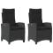 Chaises inclinables de jardin lot de 2 et coussins noir rotinDétendez-vous et profitez de l'extérieur dans ces confortables chaises de jardin inclinables ! Matériau durable : la résine tressée, également connue sous le nom de poly rotin, est un matériau synthétique solide et nécessitant peu d'entretien qui ressemble au rotin naturel. Il est léger, facile à nettoyer et couramment utilisé pour les meubles d'extérieur en raison de sa durabilité et de ses propriétés de résistance aux intempéries. Dossier réglable : ce siège de jardin est doté d'une poignée. Vous pouvez régler le dossier dans n'importe quelle position en tirant sur la poignée et le remettre rapidement dans sa position initiale. Expérience d'assise confortable : ce mobilier d'extérieur, doté de coussins épais, offre une expérience d'assise confortable. Housse amovible et lavable : ces coussins de siège sont dotés de housses amovibles pour un lavage et un entretien faciles. Cadre robuste et stable : le cadre en acier enduit de poudre assure la solidité et la stabilité du meuble de jardin pour une utilisation quotidienne à l'extérieur. Bon à savoir : Pour que vos meubles d'extérieur restent beaux, nous vous recommandons de les protéger avec une housse imperméable. Maximum 110 kg par siège. Soyez conscient du risque de feux ouverts et d'autres sources de forte chaleur à proximité du produit.