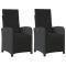 Chaises inclinables de jardin lot de 2 repose-pied noir rotinDétendez-vous et profitez de l'extérieur dans ces confortables chaises de jardin inclinables ! Matériau durable : la résine tressée, également connue sous le nom de poly rotin, est un matériau synthétique solide et nécessitant peu d'entretien qui ressemble au rotin naturel. Il est léger, facile à nettoyer et couramment utilisé pour les meubles d'extérieur en raison de sa durabilité et de ses propriétés de résistance aux intempéries. Dossier et repose-pied réglables : ce siège de jardin est doté d'une poignée. Vous pouvez régler le dossier et le repose-pied dans n'importe quelle position en tirant sur la poignée, et les remettre rapidement dans leur position initiale. Expérience d'assise confortable : ce mobilier d'extérieur, doté de coussins épais, offre une expérience d'assise confortable. Housse amovible et lavable : ces coussins de siège sont dotés de housses amovibles pour un lavage et un entretien faciles. Cadre robuste et stable : le cadre en acier enduit de poudre assure la solidité et la stabilité du meuble de jardin pour une utilisation quotidienne à l'extérieur. Bon à savoir : Pour que vos meubles d'extérieur restent beaux, nous vous recommandons de les protéger avec une housse imperméable. Maximum 110 kg par siège. Soyez conscient du risque de feux ouverts et d'autres sources de forte chaleur à proximité du produit.