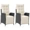 Chaises inclinables de jardin lot de 2 repose-pied noir rotinDétendez-vous et profitez de l'extérieur dans ces confortables chaises de jardin inclinables ! Matériau durable : la résine tressée, également connue sous le nom de poly rotin, est un matériau synthétique solide et nécessitant peu d'entretien qui ressemble au rotin naturel. Il est léger, facile à nettoyer et couramment utilisé pour les meubles d'extérieur en raison de sa durabilité et de ses propriétés de résistance aux intempéries. Dossier et repose-pied réglables : ce siège de jardin est doté d'une poignée. Vous pouvez régler le dossier et le repose-pied dans n'importe quelle position en tirant sur la poignée, et les remettre rapidement dans leur position initiale. Expérience d'assise confortable : ce mobilier d'extérieur, doté de coussins épais, offre une expérience d'assise confortable. Housse amovible et lavable : ces coussins de siège sont dotés de housses amovibles pour un lavage et un entretien faciles. Cadre robuste et stable : le cadre en acier enduit de poudre assure la solidité et la stabilité du meuble de jardin pour une utilisation quotidienne à l'extérieur. Bon à savoir : Pour que vos meubles d'extérieur restent beaux, nous vous recommandons de les protéger avec une housse imperméable. Maximum 110 kg par siège. Soyez conscient du risque de feux ouverts et d'autres sources de forte chaleur à proximité du produit.