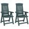 Chaises inclinables de jardin lot de 2 vert PPCes chaises inclinables de jardin sont parfaites pour discuter avec vos amis et votre famille ou simplement pour profiter et vous détendre sous le soleil ! Matériau durable : le polypropylène (PP) est un plastique populaire qui est également l'un des matériaux les plus utilisés dans le mobilier d'extérieur. Il est léger, robuste et résistant aux chocs.Dossier réglable : le dossier de la chaise de jardin peut être réglé en 4 positions d'inclinaison, de sorte que vous puissiez toujours régler la position la plus confortable selon vos préférences.Fonction pliable : le siège de jardin peut être plié pour gagner de la place lorsqu'il n'est pas utilisé.Déplacement facile : grâce à sa construction légère, la chaise d'extérieur est facile à déplacer. Remarque :Pour que vos meubles d'extérieur restent beaux, nous vous recommandons de les protéger avec une housse imperméable. Maximum 110 kg par siège.