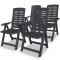 Chaises inclinables de jardin lot de 4 Plastique AnthraciteCes chaises de jardin résistantes aux intempéries seront un excellent ajout à votre jardin ou patio. Elles sont idéales pour discuter avec la famille et les amis ou tout simplement pour profiter du beau temps. Les chaises inclinables sont en plastique durable, ce qui les rend résistantes aux intempéries et faciles à nettoyer. Les dossiers des chaises disposent de 4 positions d'inclinaison, de sorte que vous pouvez toujours trouver la position la plus confortable. Elles sont également légères, ce qui les rend faciles à déplacer. Les chaises peuvent être pliées pour économiser de l'espace lorsqu'elles ne sont pas utilisées. La livraison comprend 4 chaises. Maximum 110 kg par siège. ,