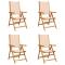 Chaises inclinables de jardin lot de 4 beige tissu bois massifDétendez-vous et profitez de l'extérieur dans ces confortables chaises de jardin inclinables ! Robuste et stable : le bois d'acacia massif est connu pour sa solidité et sa durabilité. Ses couleurs variées et ses grains uniques lui confèrent un aspect attrayant. Sa stabilité et sa résistance aux intempéries en font un matériau idéal pour la fabrication de meubles d'intérieur et d'extérieur.Fonction d'inclinaison : le siège de jardin est spécialement conçu avec une fonction d'inclinaison afin que vous puissiez régler le dossier selon votre confort.Facile à transporter et à ranger : la chaise peut être facilement pliée lorsqu'elle n'est pas utilisée, pour un rangement et un transport faciles.Conception pratique : la main courante en bois, pratique et plate, vous permet de poser vos mains dessus tout en profitant d'un moment en plein air.Diverses utilisations : la chaise pliable a un large éventail d'utilisations et peut facilement répondre à vos besoins dans n'importe quel environnement extérieur, comme les jardins, les patios, les balcons, etc. Bon à savoir :Pour que vos meubles d'extérieur restent beaux, nous vous recommandons de les protéger avec une housse imperméable. Maximum 110 kg par siège.