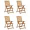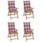 Chaises inclinables de jardin lot de 4 et coussins Bois acaciaCet ensemble de chaises de jardin inclinables en bois avec coussins est conçu pour améliorer votre niveau de confort tout en vous relaxant à l'extérieur. Il est idéal pour discuter en famille et entre amis ou tout simplement profiter des bains de soleil apaisants ! Ces chaises d'extérieur sont en bois d'acacia massif avec une finition à l'huile, un bois dur aux grains denses. Le bois d'acacia massif a la force de soutenir le poids et de résister à l'usure du temps. Avec la surface finie à l'huile, ces chaises sont faciles à nettoyer avec un chiffon humide. De plus, les dossiers de ces fauteuils sont réglables en 5 positions d'inclinaison, vous permettant de toujours trouver la position la plus agréable. De plus, les coussins fournis offrent un confort supplémentaire lors de la détente ou du dîner. Chaque coussin a une bande élastique et deux jeux de cordes pour le fixer fermement sur la chaise. Maximum 110 kg par siège.