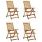 Chaises inclinables de jardin lot de 4 et coussins Bois acaciaCet ensemble de chaises de jardin inclinables en bois avec coussins est conçu pour améliorer votre niveau de confort tout en vous relaxant à l'extérieur. Il est idéal pour discuter en famille et entre amis ou tout simplement profiter des bains de soleil apaisants ! Ces chaises d'extérieur sont en bois d'acacia massif avec une finition à l'huile, un bois dur aux grains denses. Le bois d'acacia massif a la force de soutenir le poids et de résister à l'usure du temps. Avec la surface finie à l'huile, ces chaises sont faciles à nettoyer avec un chiffon humide. De plus, les dossiers de ces fauteuils sont réglables en 5 positions d'inclinaison, vous permettant de toujours trouver la position la plus agréable. De plus, les coussins fournis offrent un confort supplémentaire lors de la détente ou du dîner. Chaque coussin a une bande élastique et deux jeux de cordes pour le fixer fermement sur la chaise. Maximum 110 kg par siège. ,