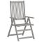 Chaises inclinables de jardin lot de 4 et coussins Bois acaciaCet ensemble de chaises inclinables de jardin à la mode avec coussins augmente le confort de votre espace extérieur ! Ces fauteuils sont en bois d'acacia massif à la finition délavé gris, un bois dur aux grains denses. Ces chaises d'extérieur magnifiquement conçues sont stables, durables et accrocheuses. Le dossier de la chaise peut être ajusté en 5 réglages d'inclinaison, de sorte que vous puissiez toujours trouver la position la plus confortable selon vos préférences. De plus, les coussins fournis offrent un confort supplémentaire lors de la détente ou du dîner. Chaque coussin a une bande élastique et deux jeux de cordes pour le fixer fermement sur la chaise. Ces chaises sont parfaites pour dîner en famille ou simplement profiter du beau temps dans votre jardin. Maximum 110 kg par siège. ,