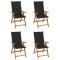 Chaises inclinables de jardin lot de 4 et coussins Bois acaciaCet ensemble de chaises de jardin inclinables en bois avec coussins est conçu pour améliorer votre niveau de confort tout en vous relaxant à l'extérieur. Il est idéal pour discuter en famille et entre amis ou tout simplement profiter des bains de soleil apaisants ! Ces chaises d'extérieur sont en bois d'acacia massif avec une finition à l'huile, un bois dur aux grains denses. Le bois d'acacia massif a la force de soutenir le poids et de résister à l'usure du temps. Avec la surface finie à l'huile, ces chaises sont faciles à nettoyer avec un chiffon humide. De plus, les dossiers de ces fauteuils sont réglables en 5 positions d'inclinaison, vous permettant de toujours trouver la position la plus agréable. De plus, les coussins fournis offrent un confort supplémentaire lors de la détente ou du dîner. Chaque coussin a une bande élastique et deux jeux de cordes pour le fixer fermement sur la chaise. Maximum 110 kg par siège. ,