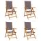 Chaises inclinables de jardin lot de 4 tissu et bois massifDétendez-vous et profitez de l'extérieur dans ces confortables chaises de jardin inclinables ! Robuste et stable : le bois d'acacia massif est connu pour sa solidité et sa durabilité. Ses couleurs variées et ses grains uniques lui confèrent un aspect attrayant. Sa stabilité et sa résistance aux intempéries en font un matériau idéal pour la fabrication de meubles d'intérieur et d'extérieur. Fonction d'inclinaison : le siège de jardin est spécialement conçu avec une fonction d'inclinaison afin que vous puissiez régler le dossier selon votre confort. Facile à transporter et à ranger : la chaise peut être facilement pliée lorsqu'elle n'est pas utilisée, pour un rangement et un transport faciles. Conception pratique : la main courante en bois, pratique et plate, vous permet de poser vos mains dessus tout en profitant d'un moment en plein air. Diverses utilisations : la chaise pliable a un large éventail d'utilisations et peut facilement répondre à vos besoins dans n'importe quel environnement extérieur, comme les jardins, les patios, les balcons, etc. Bon à savoir : Pour que vos meubles d'extérieur restent beaux, nous vous recommandons de les protéger avec une housse imperméable. Maximum 110 kg par siège. ,