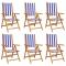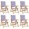 Chaises inclinables de jardin lot de 6 tissu et bois massifDétendez-vous et profitez de l'extérieur dans ces confortables chaises de jardin inclinables ! Robuste et stable : le bois d'acacia massif est connu pour sa solidité et sa durabilité. Ses couleurs variées et ses grains uniques lui confèrent un aspect attrayant. Sa stabilité et sa résistance aux intempéries en font un matériau idéal pour la fabrication de meubles d'intérieur et d'extérieur.Fonction d'inclinaison : le siège de jardin est spécialement conçu avec une fonction d'inclinaison afin que vous puissiez régler le dossier selon votre confort.Facile à transporter et à ranger : la chaise peut être facilement pliée lorsqu'elle n'est pas utilisée, pour un rangement et un transport faciles.Conception pratique : la main courante en bois, pratique et plate, vous permet de poser vos mains dessus tout en profitant d'un moment en plein air.Diverses utilisations : la chaise pliable a un large éventail d'utilisations et peut facilement répondre à vos besoins dans n'importe quel environnement extérieur, comme les jardins, les patios, les balcons, etc. Bon à savoir :Pour que vos meubles d'extérieur restent beaux, nous vous recommandons de les protéger avec une housse imperméable. Maximum 110 kg par siège.
