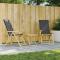Chaises inclinables de jardin pliantes lot de 2 coussins bambouCes chaises inclinables de jardin, fabriquées en bambou massif, seront un excellent choix pour votre famille pour dîner ou lire et se détendre. Matériau durable : le bambou est connu pour sa flexibilité et sa dureté. Les meubles en bambou sont une bonne option lorsque vous voulez des meubles solides fabriqués à partir de matériaux naturels. Fonction d'inclinaison : cette chaise inclinable est conçue avec un dossier réglable en cinq positions, ce qui vous permet de personnaliser l'inclinaison pour votre confort. Conception pliable : ces chaises peuvent être facilement repliées lorsqu'elles ne sont pas utilisées, pour un rangement et un transport faciles. Expérience d'assise confortable : ces chaises, dotées de coussins épais, offrent une expérience d'assise confortable. Housse amovible et lavable : ces coussins de siège sont dotés de housses amovibles pour un lavage et un entretien faciles. Les housses de coussin ont un rabat à l'arrière pour une fixation facile aux dossiers. Bon à savoir : Afin de prolonger la durée de vie de votre mobilier d'extérieur, nous vous recommandons de le protéger avec une housse imperméable. Maximum 110 kg par siège. Soyez conscient du risque de feux ouverts et d'autres sources de forte chaleur à proximité du produit. ,