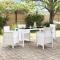 Chaises de jardin 4 pcs Blanc Standard Osier PECette chaise de jardin est une option à la fois chic et pratique pour profiter de l'extérieur. Elle s'arrange super bien dans différents jardins et terrasses. Son look moderne, avec ses lignes fluides et sans chichis, plaira à ceux qui recherchent la simplicité et l'efficacité. Que tu partages un bon moment avec des amis ou que tu te déconnectes un instant, cette chaise ajoute du style inspiré du rotin à ton expérience extérieure, t'invitant à te relaxer et à papoter. Matériau en polypropylène de qualité La chaise est fabriquée en polypropylène robuste, résistant aux UV et imperméable. Elle peut affronter les intempéries sans soucis, ce qui en fait un choix parfait pour dehors. Son matériau solide garantit qu'elle reste au top saison après saison. Détails de l'assemblage Cette chaise s'assemble sans prise de tête - tu peux juste prendre un tournevis et demander un coup de main à un pote. Tu ne devrais pas attendre longtemps avant de pouvoir t'installer confortablement en extérieur. Pas besoin d'un pro pour la monter ; un assemblage rapide et c'est bon ! Caractéristiques de soutien ergonomique Cette chaise est faite pour soutenir ta posture, donc tu resteras à l'aise que tu sois chill tout seul ou en train de chatter avec des amis. Son design astucieux t'assure le confort dont tu as besoin pour passer un bon moment assis. Utilisation extérieure polyvalente Elle s'intègre parfaitement dans les jardins ou sur les terrasses, ce qui la rend idéale pour toutes les occasions en extérieur. Que tu sois en famille au barbecue ou en mode tranquille, cette chaise s'adapte à tout et ajoute une belle ambiance partout. Conseils d'entretien Garder cette chaise en bon état est hyper simple - un chiffon humide suffit pour la nettoyer. Pas de stress pour l'entretien, donc elle est toujours prête à utiliser, sans souci avec la météo.