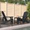 Chaises de jardin Adirondack avec table PEHD AnthraciteCette chaise de jardin Adirondack avec table est un supplément pratique et élégant à votre jardin, patio ou terrasse. Matériau de première qualité : les chaises et la table de patio sont fabriquées en PEHD (polyéthylène haute densité) résistant aux intempéries et aux rayons UV. Ce matériau améliore parfaitement les défauts du bois massif, qui se décompose et se fissure facilement, surtout les jours de pluie. Surface nécessitant peu d'entretien : l'ensemble de meubles d'extérieur ne nécessite pas de peinture, de teinture, d'imperméabilisation ou d'entretien similaire. Il suffit de le laver avec du savon, de l'eau et une brosse à poils doux. Avec un minimum d'entretien, ces chaises et cette table durables vous offriront des années d'utilisation. Design confortable : équipées d'accoudoirs larges et d'un dossier haut, ces chaises d'extérieur vous offrent un confort optimal. Table pratique : la table Adirondack vous permet de placer votre téléphone, vos lunettes de soleil, votre boisson et d'autres petits objets. Remarque : Afin de prolonger la durée de vie de votre mobilier d'extérieur, nous vous recommandons de le protéger avec une housse imperméable. Maximum 110 kg par siège. ,