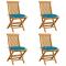 Chaises de jardin avec coussins bleu clair lot de 4 Teck massifCes chaises de jardin pliables en bois, au design simple pourtant élégant, sont conçues pour vous offrir une expérience d'assise confortable. Fabriquée en bois dur de teck extrêmement durable, cette pièce de meuble en teck a été chevronnée, séchée au four puis finement poncée pour lui donner un aspect très lisse. Le bois de teck est connu pour sa résistance exceptionnelle aux intempéries, ce qui le rend bien plus adapté aux meubles de jardin que tout autre type de bois. Le bois de teck est le choix idéal si vous souhaitez acheter un meuble de jardin durable. La surface poncée est facile à nettoyer avec un chiffon humide. Ces chaises de salle à manger de jardin sont également légères, ce qui les rend complètement flexibles et faciles à déplacer. Les chaises d'extérieur peuvent être facilement repliées lorsqu'elles ne sont pas utilisées. De plus, les coussins de siège bien rembourrés inclus offrent également un confort d'assise supplémentaire. Maximum 110 kg par siège.