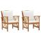 Chaises de jardin avec coussins lot de 2 Bois d'acacia massifCet ensemble de 2 chaises de jardin en bois est spécialement conçu pour attirer l'attention dans votre jardin, patio et terrasse ! Matériau durable : la chaise d'extérieur est en bois d'acacia massif avec une finition à l'huile, ce qui la rend stable et durable. Le savoir-faire artisanal et les belles veines du bois rendent chaque meuble bien défini et légèrement différent l'un de l'autre. Cadre robuste : le cadre en bois assure la robustesse et la stabilité. Expérience d'assise confortable : le coussin de siège et l'oreiller de dossier ajoutent un confort supplémentaire à la chaise. Bon à savoir : Chaque article est unique, avec des variations de couleurs et de grains. La livraison est aléatoire, ce qui garantit l'exclusivité et l'individualité de votre produit. Maximum 110 kg par siège. ,