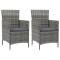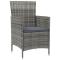 Chaises de jardin avec coussins lot de 2 Résine tressée GrisDînez avec les membres de votre famille ou profitez simplement du temps dans votre espace extérieur avec cet ensemble de chaises de jardin. La chaise d'extérieur est fabriquée à partir d'un solide cadre en acier enduit de poudre, ce qui la rend robuste et stable pour des années de détente. Le fauteuil recouvert de résine tressée est facile à nettoyer avec un chiffon humide et convient à une utilisation quotidienne à l'extérieur. De plus, le coussin d'assise bien rembourré ajoute un confort supplémentaire à la chaise. Remarque : afin de prolonger la durée de vie de vos meubles d'extérieur, nous vous recommandons de les nettoyer régulièrement et de ne pas les laisser à l'extérieur sans protection inutilement. Nettoyage : Utiliser une solution savonneuse douce. Stockage : si possible, stockez dans un endroit frais et sec à l'intérieur. Si le produit est stocké à l'extérieur, protégez-le avec une housse imperméable. Essuyez et séchez l'excès d'eau ou de neige des surfaces planes après la pluie ou une chute de neige. Permettez une circulation d'air suffisante afin d'éviter les dommages liés à l'humidité. Maximum 110 kg par siège. Soyez conscient du risque de feux ouverts et d'autres sources de forte chaleur à proximité du produit. ,