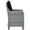 Chaises de jardin avec coussins lot de 2 Résine tresséeCes chaises de jardin confortables sont d'excellents choix pour discuter avec votre famille et vos amis ou simplement pour profiter du soleil apaisant dans votre espace de vie extérieur. La chaise d'extérieur, dotée d'un cadre en acier enduit de poudre recouvert de résine tressée ronde, est robuste et facile à nettoyer. Les coussins d'assise et de dossier bien rembourrés ajoutent un confort supplémentaire à votre temps de détente. La housse de coussin présente une fermeture éclair, amovible et lavable. De plus, les pieds en bois d'acacia massif ajoutent à sa robustesse et à sa stabilité. Ces chaises de jardin sont faciles à déplacer grâce à leur construction légère. Remarque importante : nous vous recommandons de couvrir la chaise pendant la pluie, la neige et le gel pour que son meilleur service dure. Maximum 110 kg par siège. Soyez conscient du risque de feux ouverts et d'autres sources de forte chaleur à proximité du produit.