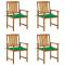 Chaises de jardin avec coussins lot de 4 Bois d'acacia massifDécorez votre extérieur avec ces chaises de jardin en bois à lattes, qui ajouteront une touche de charme rustique. Ces chaises de jardin sont en bois d'acacia massif, ce qui les rend robustes et stables. Les coussins ajoutent du confort supplémentaire. Chaque coussin comporte deux ensembles de cordes pour le fixer solidement sur la chaise d'extérieur. Maximum 110 kg par siège. ,