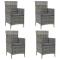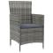 Chaises de jardin avec coussins lot de 4 Résine tressée GrisDînez avec les membres de votre famille ou profitez simplement du temps dans votre espace extérieur avec cet ensemble de chaises de jardin. La chaise d'extérieur est fabriquée à partir d'un solide cadre en acier enduit de poudre, ce qui la rend robuste et stable pour des années de détente. Le fauteuil recouvert de résine tressée est facile à nettoyer avec un chiffon humide et convient à une utilisation quotidienne à l'extérieur. De plus, le coussin d'assise bien rembourré ajoute un confort supplémentaire à la chaise. Remarque : afin de prolonger la durée de vie de vos meubles d'extérieur, nous vous recommandons de les nettoyer régulièrement et de ne pas les laisser à l'extérieur sans protection inutilement. Nettoyage : Utiliser une solution savonneuse douce. Stockage : si possible, stockez dans un endroit frais et sec à l'intérieur. Si le produit est stocké à l'extérieur, protégez-le avec une housse imperméable. Essuyez et séchez l'excès d'eau ou de neige des surfaces planes après la pluie ou une chute de neige. Permettez une circulation d'air suffisante afin d'éviter les dommages liés à l'humidité. Maximum 110 kg par siège. Soyez conscient du risque de feux ouverts et d'autres sources de forte chaleur à proximité du produit. ,