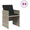 Chaises de jardin avec coussins lot de 4 gris clair poly rotinDétendez-vous et profitez de l'extérieur dans ces confortables chaises de jardin ! Matériau durable : la résine tressée, également connue sous le nom de poly rotin, est un matériau synthétique solide et nécessitant peu d'entretien qui ressemble au rotin naturel. Il est léger, facile à nettoyer et couramment utilisé pour les meubles d'extérieur en raison de sa durabilité et de ses propriétés de résistance aux intempéries. Expérience d'assise confortable : ce mobilier d'extérieur, doté de coussins épais, offre une expérience d'assise confortable. Dossier rabattable : ces chaises sont dotées d'un dossier à rabat qui peut être rabattu pour un rangement compact. Housse amovible et lavable : ces coussins sont dotés de housses amovibles pour un lavage et un entretien faciles. Les housses de coussin de chaise ont un rabat à l'arrière pour une fixation facile aux chaises. Cadre robuste et stable : le cadre en acier enduit de poudre assure la solidité et la stabilité du meuble de jardin pour une utilisation quotidienne à l'extérieur. Bon à savoir : Pour que vos meubles d'extérieur restent beaux, nous vous recommandons de les protéger avec une housse imperméable. Maximum 110 kg par siège. Soyez conscient du risque de feux ouverts et d'autres sources de forte chaleur à proximité du produit. ,
