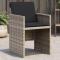 Chaises de jardin avec coussins lot de 4 gris clair poly rotinDétendez-vous et profitez de l'extérieur dans ces confortables chaises de jardin ! Matériau durable : la résine tressée, également connue sous le nom de poly rotin, est un matériau synthétique solide et nécessitant peu d'entretien qui ressemble au rotin naturel. Il est léger, facile à nettoyer et couramment utilisé pour les meubles d'extérieur en raison de sa durabilité et de ses propriétés de résistance aux intempéries. Expérience d'assise confortable : ce mobilier d'extérieur, doté de coussins épais, offre une expérience d'assise confortable. Dossier rabattable : ces chaises sont dotées d'un dossier à rabat qui peut être rabattu pour un rangement compact. Housse amovible et lavable : ces coussins sont dotés de housses amovibles pour un lavage et un entretien faciles. Les housses de coussin de chaise ont un rabat à l'arrière pour une fixation facile aux chaises. Cadre robuste et stable : le cadre en acier enduit de poudre assure la solidité et la stabilité du meuble de jardin pour une utilisation quotidienne à l'extérieur. Bon à savoir : Pour que vos meubles d'extérieur restent beaux, nous vous recommandons de les protéger avec une housse imperméable. Maximum 110 kg par siège. ,