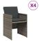 Chaises de jardin avec coussins lot de 4 gris résine tresséeDétendez-vous et profitez de l'extérieur dans ces confortables chaises de jardin ! Matériau durable : la résine tressée, également connue sous le nom de poly rotin, est un matériau synthétique solide et nécessitant peu d'entretien qui ressemble au rotin naturel. Il est léger, facile à nettoyer et couramment utilisé pour les meubles d'extérieur en raison de sa durabilité et de ses propriétés de résistance aux intempéries. Expérience d'assise confortable : ce mobilier d'extérieur, doté de coussins épais, offre une expérience d'assise confortable. Dossier rabattable : ces chaises sont dotées d'un dossier à rabat qui peut être rabattu pour un rangement compact. Housse amovible et lavable : ces coussins sont dotés de housses amovibles pour un lavage et un entretien faciles. Les housses de coussin de chaise ont un rabat à l'arrière pour une fixation facile aux chaises. Cadre robuste et stable : le cadre en acier enduit de poudre assure la solidité et la stabilité du meuble de jardin pour une utilisation quotidienne à l'extérieur. Bon à savoir : Pour que vos meubles d'extérieur restent beaux, nous vous recommandons de les protéger avec une housse imperméable. Maximum 110 kg par siège. Soyez conscient du risque de feux ouverts et d'autres sources de forte chaleur à proximité du produit. ,