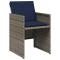 Chaises de jardin avec coussins lot de 4 gris résine tresséeDétendez-vous et profitez de l'extérieur dans ces confortables chaises de jardin ! Matériau durable : la résine tressée, également connue sous le nom de poly rotin, est un matériau synthétique solide et nécessitant peu d'entretien qui ressemble au rotin naturel. Il est léger, facile à nettoyer et couramment utilisé pour les meubles d'extérieur en raison de sa durabilité et de ses propriétés de résistance aux intempéries.Expérience d'assise confortable : ce mobilier d'extérieur, doté de coussins épais, offre une expérience d'assise confortable.Dossier rabattable : ces chaises sont dotées d'un dossier à rabat qui peut être rabattu pour un rangement compact.Housse amovible et lavable : ces coussins sont dotés de housses amovibles pour un lavage et un entretien faciles. Les housses de coussin de chaise ont un rabat à l'arrière pour une fixation facile aux chaises.Cadre robuste et stable : le cadre en acier enduit de poudre assure la solidité et la stabilité du meuble de jardin pour une utilisation quotidienne à l'extérieur. Bon à savoir :Pour que vos meubles d'extérieur restent beaux, nous vous recommandons de les protéger avec une housse imperméable.